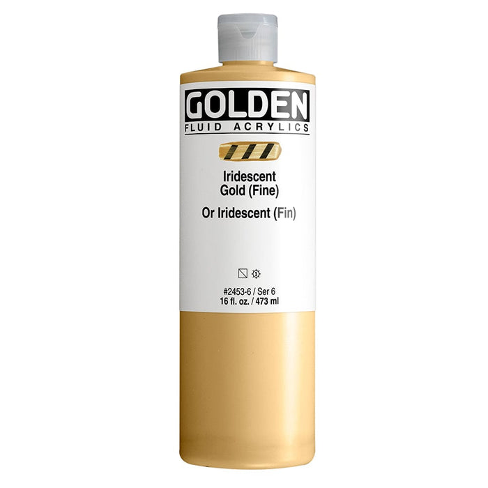 Achieve intense colour with Golden Fluid Iridescent Gold (fine). Ideal for fine brushwork, staining, and airbrush techniques. Loaded with quality pigments and acrylic polymer binder, this paint is perfect for various applications. Specifications: - Viscosity: Heavy cream-like - Pigment load: High - Versatile for blending and mixing - Suitable for dry brush, pouring, and fine details